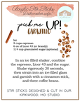 Cowboy Carajillo Drink Stirrers! Use them to mix up a cocktail (like the one featured on the back of the package) or add a bit of fun to any drink, spiked or not. The stir sticks can also can be used to differentiate glasses for guests. We design and laser cut these in our Kirkwood, MO studio.