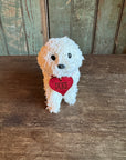 There are few things loved more than chocolate but a doodle dog may be one! Perfect for anniversaries, Valentine's or birthdays, the "Puppy Love" doodle ornament is available in 3 different styles in gift box 4.5 x 4.5 with a reusable "I love you more than chocolate" wooden tag and a couple chocolate kisses.